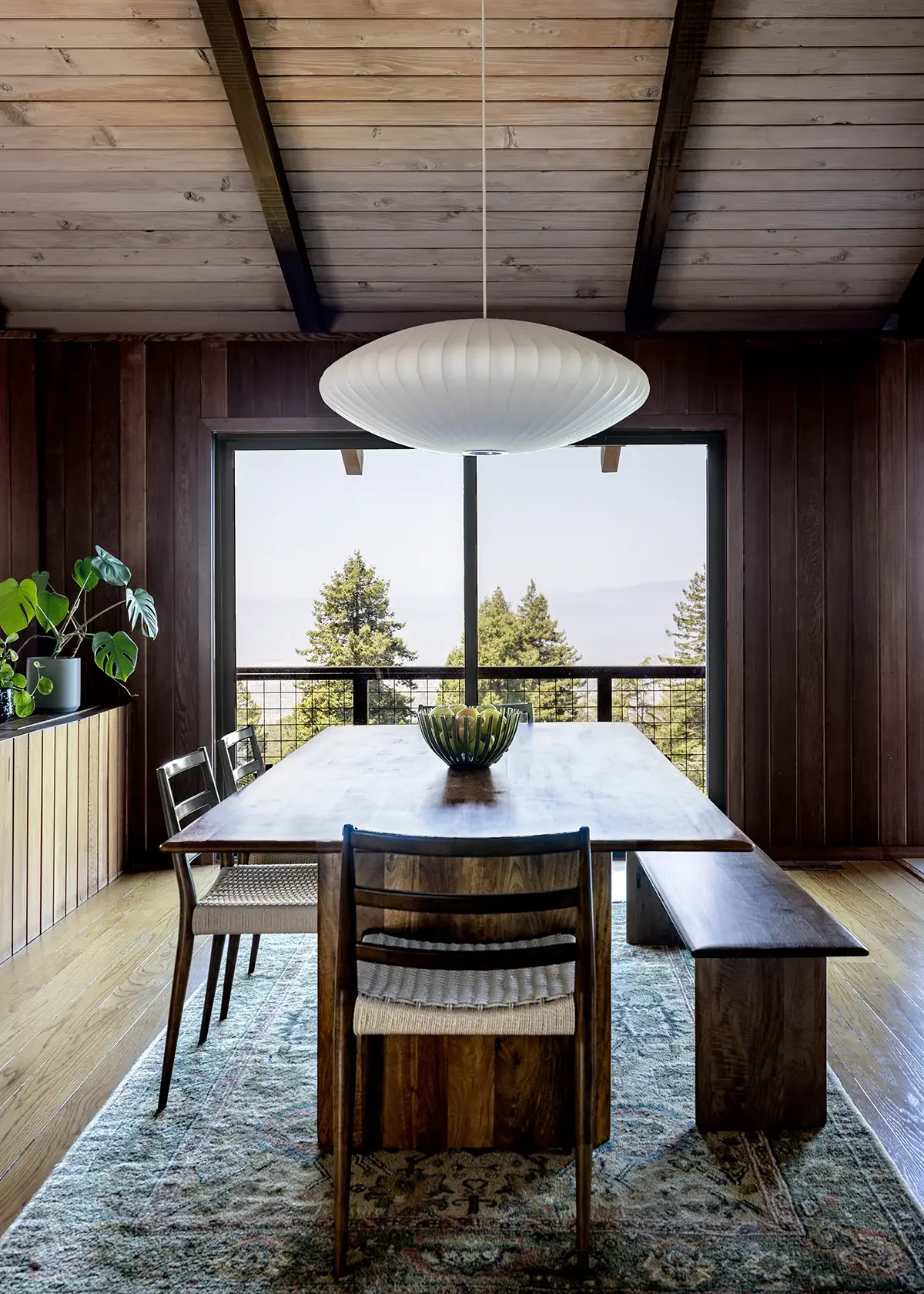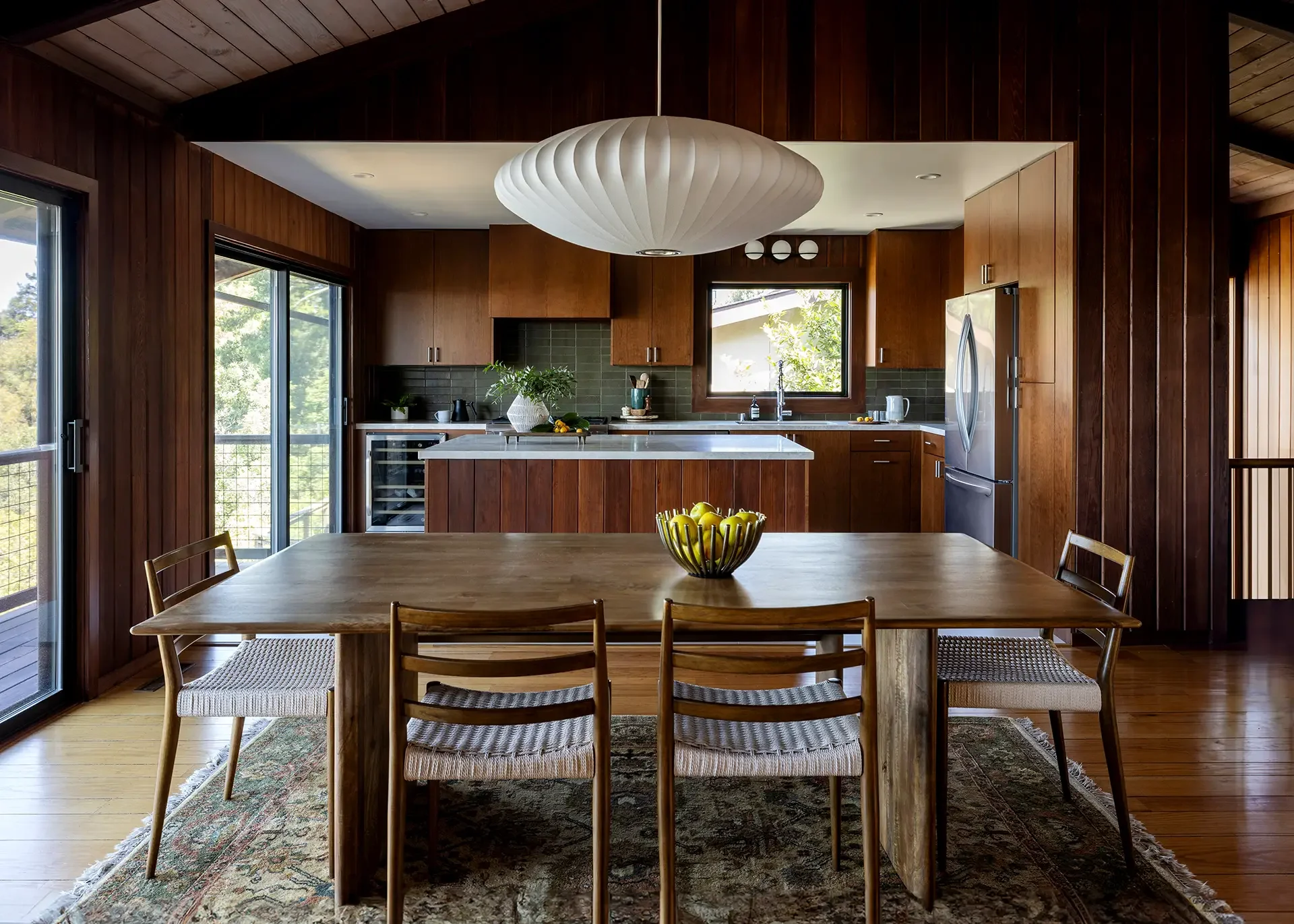 The interior of the living spaces is lined with timeless wood objects and walls.