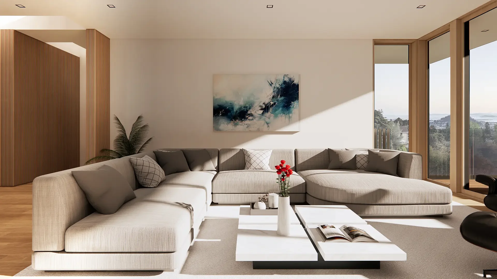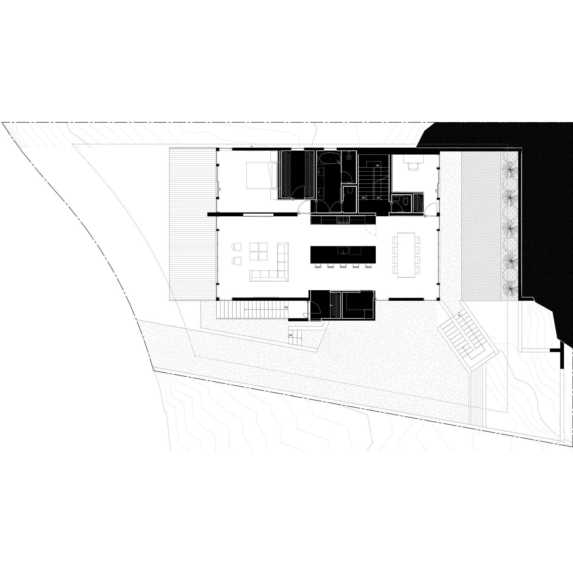 The concept for the house is a series of volumes and planes that are carved into the hillside to create a rare residential experience with complete unobstructed views to the SF Bay, San Francisco and the Golden Gate Bridge.